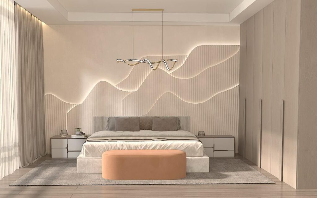 The result is a calm, elegant home where natural materials and clean lines define a timeless design.