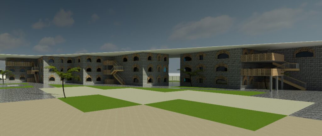 Rooted in the principles of sustainability and resilience, the design makes thoughtful use of local materials, passive environmental strategies, and natural resources.